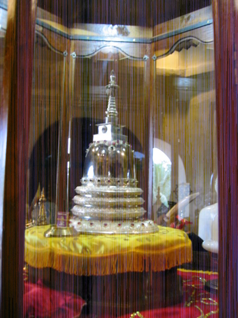宝石がちりばめられた豪華な仏塔の中に納められている