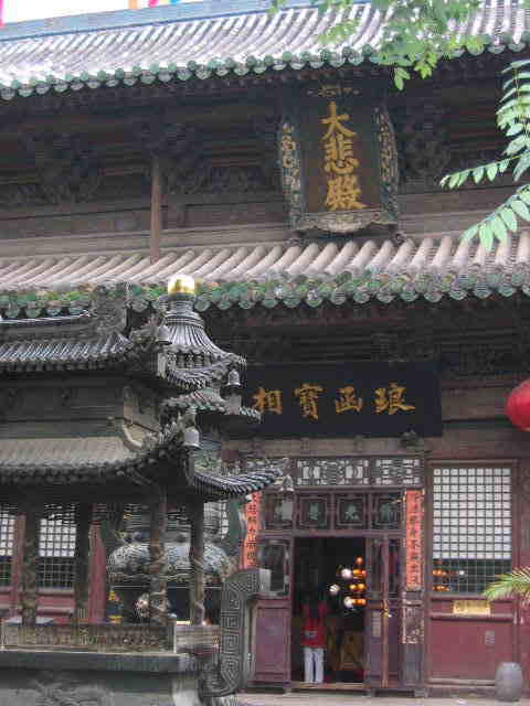 太原市街のほぼ中心にある崇善寺は唐代末期の創建と伝えられている。明代に馬皇后を祀るため1381年に拡張されたが、清代に火災にあい現存するのは山門、鐘楼、大悲殿のみである。