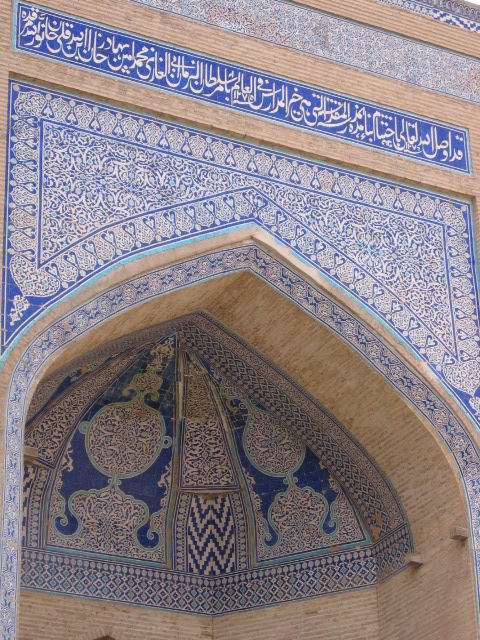 特徴のあるドームに詩人・哲学者・力士であったパフラヴァン・マフムード(1247〜1326)が埋葬されている。回りは共同墓地になっている。ウズベキスタンの墓は土葬であるが地面に埋めない。遺体は地上に横たえてその上を土やレンガで覆うそうである。やがて土の墓は風化し崩れその上に次の墓が作られる。時が過ぎると墓場は遺骨が積み重なっていくのだそうだ。