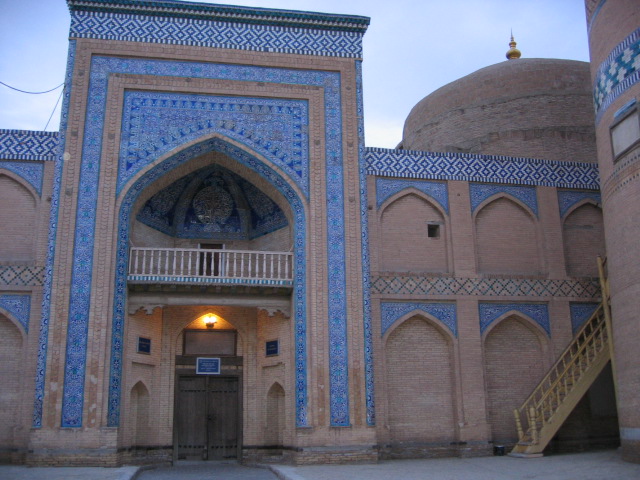 ムハマッド・ラヒムハン2世(1863〜1910)と息子のアスファンディヤル・ハン時代のヒヴァハン国の第一大臣を勤めたイスラム・ホジャが1908〜1910に建てたメドレセとミナレットである。