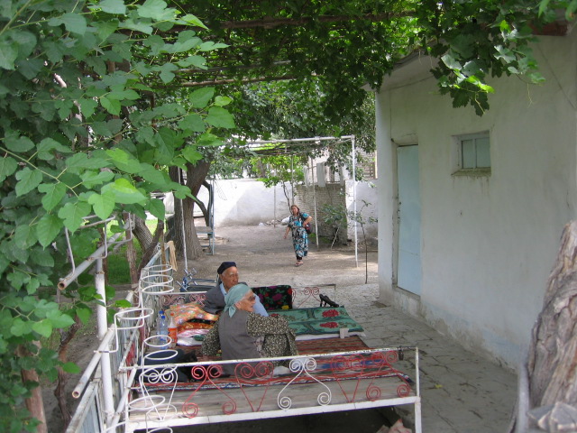 ウズベキスタンに入国して最初に桑を見たのはタシケントの国内線ターミナルの広場であった。ウルゲンチへ飛ぶ朝便のチェックインまで時間があったので広場へ出た。歩いていたら足元に何の実だか定かでなかったが指先ほどの白い実がいっぱい落ちていた。見上げると枝に実が鈴なりになっていた。手に取って何だろうかと見ていると男が近寄って来て口に入れろとジェスチャーで話し掛けてきた。ちょっと心配ではあったが思い切って口に入れると甘い味がした。これがウズベキスタンにおける桑との最初の出会いとウズベキスタン人との最初の会話となった。