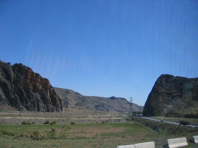 ウズベキスタンの大半は砂漠、半砂漠地帯である。山並が見えるのはサマルカンドから東部や南部にあたる方向で、新彊〜タジキスタンを経てこの地で消える天山の山塊である。サマルカンドからタシケントへ行くにはこのなだらかな支脈を越えることになる。