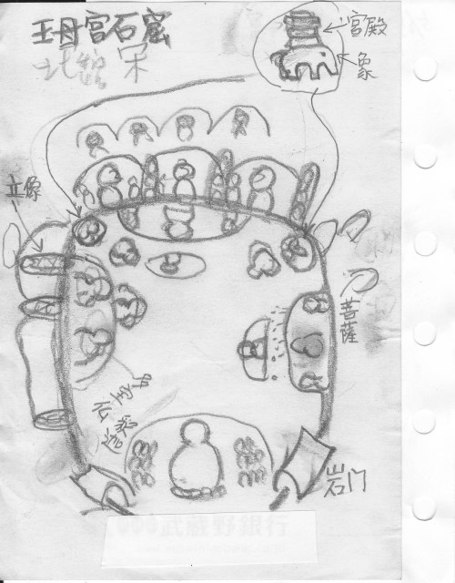 午前中須弥山石窟を見てから昼固原に戻り午後1時過ぎに徑川にむけて固原を出発した。昨日トンネルで通過した紅軍大長征の難関の地、六盤山が車窓から遠くに見えた。再び甘粛省に入り平凉、白水、徑川と車は進み王母宮に到着したのは夕暮れになってしまった。移動の疲れが出たのか石窟のなか印象が記憶として残らなかった。Aのメモが帰ってからの唯一の記憶の手掛かりとなった。