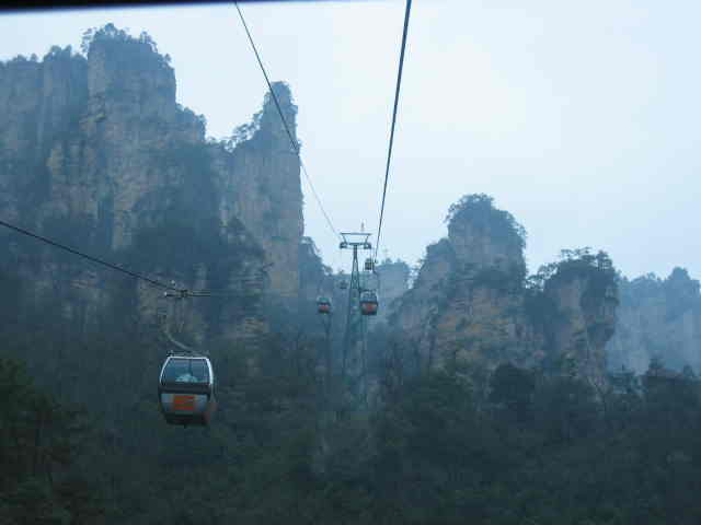 ゴンドラは6人乗りで窓からゆっくり奇岩奇峰群を観賞できる。