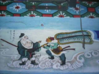 休憩所となっている楼閣の梁の四方に孫悟空の物語が描かれている。もう少しウイグルの文化に関係のあるものがあってもよいのではないだろうかと思われた。