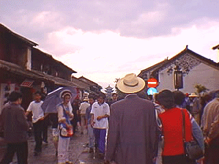 玉泉公園で湧き出した泉は川となって街の中を流れ下る。その下ったところに老街がある。 老街の街並みは宋の時代からの古い建物であるが、 1996年の大地震でも被害がなく生き延びている。 以前は納西族が生活していた街であったが、世界遺産に指定されてからは開発が進み 今は売店が軒を連ねて人々の生活の匂いは無くなっている。