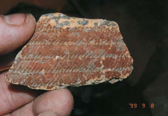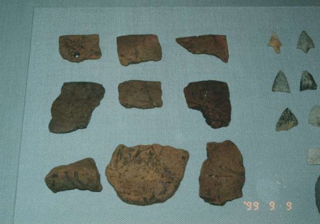 地元の土器に混じって、九州から持ち込まれた縄紋土器も出土している