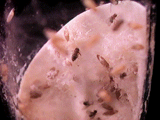 ハエのさなぎです。私はやらなかったのですが、小学生だか、中学生の時の理科の教科書にショウジョウバエを育てるような実験があったように記憶しているのですが・・・。そうそう、さくらももこ氏のエッセイの中に小学校時代のエピソードで、そんなのがあったような。中学校時代でしたっけ?(曖昧)