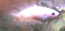 Betta Splendensです。オスにもかかわらずヒレは大きくなく、色も地味です。これが改良を重ねて今のショウベタの姿になったのです。参考までに・・・。