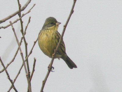 冬の市街地の生け垣や公園で、チッ、チッと鳴きながら餌を捜しているスズメ大の小鳥である。 顔や身体は全体的に濃い茶褐色で、下面は黄色に褐色の縞があり、飛ぶと尾羽に白い部分が見える。 スズメに良く似ているが、この仲間はホオジロ科に属し、ホオジロ、クロジ、ノジコなど、皆同じような顔や羽をしているが少しづつ違いがある。(ムシクイよりは、それぞれの特徴がはっきりしており区別は楽である) 初夏になると、とてもいい声で鳴き出す。 |