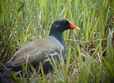 クイナ科の中の代表格で、池や水田によく見られる。 クルル、クルルと鳴き、水掻きはないのだが、結構泳ぐのもうまく水の中でも動きは早い。 赤い嘴がきれいで、お尻のところには白い羽が混じっている。 ヒナは、真っ黒なひよこのようであるが、少し成長すると頭が薄くなり、茶色の羽に変わってくる。可愛いのはわずか一時である。 繁殖期には、2,3回の子育てを行い、一番子が二番子に餌をやったりする優しいところが他の鳥には見られないところだ。 都会の池でも、繁殖力は旺盛でたくさんのヒナがかえるが、カラスや猫に取られて成鳥になるのはそれほど多くないようだ。 |