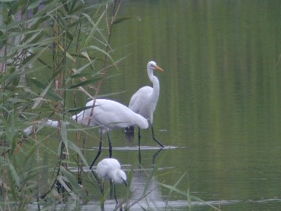 コサギの数倍はある大きさで優雅にふわりと舞い上がる大型のサギである。 アオサギよりは、若干小さく、チュウサギより大きい。(名前の通り) チュウサギとの区別は、首が長く嘴が長い。夏場の目先は緑青色である。(チュウサギの目先は黄色い) 冬場の嘴は全体的に黄色く、チュウサギの嘴は先に黒い部分がある。 しかし、並んでくれるとわかるが、以外と識別は正直言って難しい。 夏場でも黄色かったり、季節の変わり目の場合は見分けるのは詳しい観察が必要である。 |