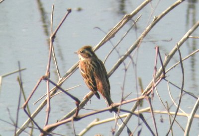 冬鳥として農耕地等にやってきてホオジロとは、胸から腹にかけて白色に褐色の帯があるので区別ができる。(ホオジロは、前面が茶渇色で帯はない)