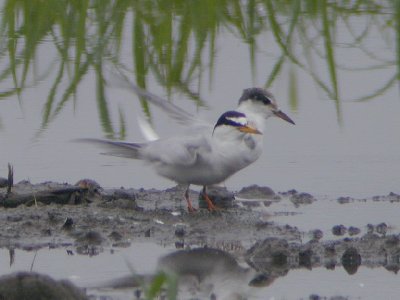 夏場は、頭の上部半分が黒く(額は白い)、嘴は黄色いことが、アジサシとの判別点である。又、並ぶと、アジサシよりはかなり小さい。