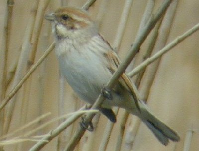 ホオジロの仲間で、冬のアシ原でアシの茎をむいて中の虫を食べる小鳥である。