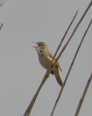 ソングポストといい、鳴き声がしたら、アシの上の方を双眼鏡で探せば、赤い口の中を覗かせながら精一杯大きな口を開けている、独特のポーズが見られる。