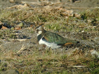 長い冠羽があり、顔は、クリーム色の混じった斑模様と輝く緑色の羽に特徴がある。