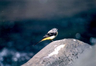 お腹と首が黄色い良く尾を振る水場近くにいる小鳥である。