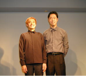 | 予告編 う〜凄いプログラム。前回のソロも凄かったけど今回も良くコレだけ集めたと言う感じです。ギターでフランス音楽をコレだけ集められるなんて・・・圧巻です。 でもって本番・・・ ギタ菌さんのギターを聴きたい一心で老骨に鞭を打ち、どうにか会社を早々と脱出。GGサロンにたどり着いたまでは良かったのだけど、GGショップで藤井さんの怒りの日の楽譜と10月20日の高田さんのチケット買ってGGサロンの席についた途端、どーっと疲労と睡魔が襲ってきたのでありました。こんなはずじゃなかったんだけど・・。 いつもなら菅原GG編集長が登場する場面でどっかで見たことのある男性が出てきて菅原さんが入院されたという説明。うーん菅原さん大丈夫かいな。 中休みにGGショップのタマキさんにお聞きしたらなんでもポリーブかなんか切ったみたい・・GGショップのレジ横でもうタバコ吸ってるよという今井さんの説明に一安心。菅原さん早く良くなって下さいね。日本のギター界は菅原さんで持ってるんですから。(爆) ステージに金さんと小泉さんが登場。小泉さんは金髪で髭は黒・・なかなかお洒落なビジュアル系バイオリニストといった感じ。なんでも昨年いわき市でユトリロとバロンの絵画をバックにやったコンサート以来の仲らしい。小泉さんはバンドネオンの小川さんともタンゴのアンサンブルを組んでおられ今月末CDデビュー。28日のFMホールでのコンサートにも行ってみよっかな。 客席にはスペイン人らしき男女がいるのが気を引いた。ギター関係者では坪川真理子さん、河野智美さん、製作家の今井さん、Tajさん、ふみこう君(東京国際予選突破オメデトウ!)、クマノ君、サンチョさんらの姿を見かけた。 オープニングのサティ。バイオリンとの音量のバランスが心配されたけど全然杞憂に終わった。小泉さんが音量を抑えて弾いてくれたせいもあるかもしれない。 コルコバードは作曲者(ミヨー)と同じく妙な曲だったけど自分の頭も意識朦朧としていたんで何にも言えません・・。でも細かいフレーズをあっさり弾いてしまう左右のメカニックには感心 プーランクのソナタ〜安心して聴けたせいもあって睡魔との戦い・・金さんゴメンナサイ。m(__)m 続くソロ3曲。金さんのMCも割りとまっとうなもので?なかなかステージで聞くことの無い曲を聴けて(見れて)良かった。意識は朦朧としてはいたものの亜麻色の髪の乙女での美しい音色が印象に残っている。 再びバイオリンとのデュオでラヴェルとイベールの作品。これまた安心して聴けたものの、その他の曲についても言える事だがギターのパートが割りと単調なアレンジが多い。フランス物で集めるという制約上止むを得なかったのかもしれないが、ギターのパートがもう少し効果的に聴こえるアレンジで聴きたかったと感じたのは私だけだろうか。 第2部はデイアンス編のシャンソン3曲。ここで金さんにしては珍しくミスが目立ち(新曲ばっかりで充分練習出来なかったのかな・・・)心地よいはずの眠りが覚めてしまうアクシデント(反省(^_^;))それにしてもディアンスって人はなんであんな難しいアレンジにするんだろ。 再びバイオリンの小泉さんを迎えてデュオ2曲。(アンコールもデュオで) アマジィアの解説で、アマジィアの意味が愛人だという金さんのMCに場内が沸く。やっぱ愛人が出てくると金さんの演奏ものって来るみたい。Masahiro君にも聞かせてやりたかったなぁ。 いよいよ楽しみにしていたカステレードの4月のソナチネ。クラシック以外の要素がふんだんに織り込まれた曲。演奏は良かったのだが曲が今ひとつといった印象。他の方はどう感じられたかは分からないが。私の体調が悪かったこともそう感じた原因かもしれない。小泉さんも結構四苦八苦して弾いているように感じたのは曲がそれだけ難しかったせいなのか。 アンコールはフランス物とイタリア物の2曲。こちらはゆったりと聞かせていただくことが出来た。(良く知っている曲だが曲名聞き取れず) 今日は金さんに元気をわけてもらうつもりだったけど、開演前から身体がフラフラ。コンサート直後の打上も失礼し小泉さんとのツーショットだけ撮らせて貰って早々にGGサロンを後にした。金さん本当に失礼しました。次回の小川さんのバンドネオンとのコンサート楽しみにしております。 |