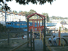 い。線路のすぐ近くなので、電車を間近に見ることができる。パイプ