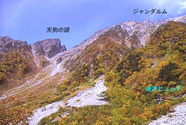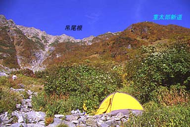 我々のテント場後方より、明日登るルートを見上げる。ここの標高で