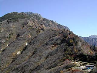 右下に早月小屋と左頭上に剣岳の頭が見える