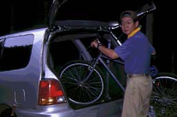 やっと縦走を終え、今からマウンティングバイクを車に収納。