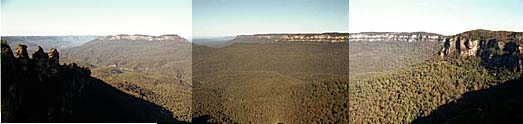 ブルーマウンテンズの展望 左端に見えるはスリー・シスターズと呼ばれる奇岩