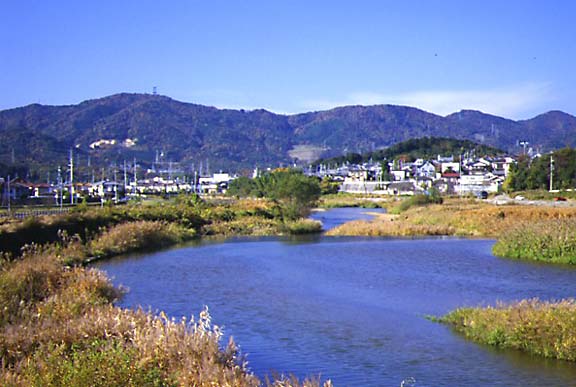 後ろは滋賀と京都の県境の山で、右側の方角に石山寺があります。