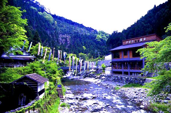四郷川沿いにあり、岩風呂と桧風呂の二種類あり。