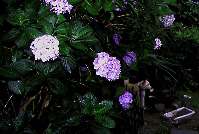 「犬とアジサイ」