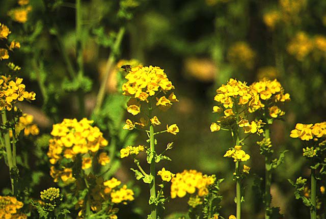 菜の花を次から次へと渡り歩いている蜜蜂。どの花が 美味しいかな〜?