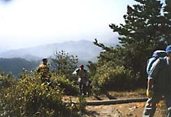 いよいよ第一の最難関、菊水山の登りである。急角度直登に階段があるといえ、一気の登には厳しい。