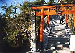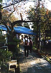 写真の左側からこちらに歩いてくる様子が解る。石段を降りてこられる人は、参拝者です。
