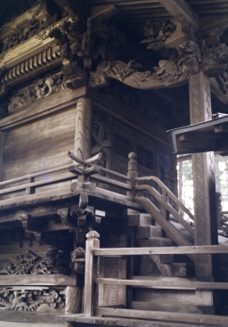 北熊井諏訪社(塩尻市片丘熊井) 宮大工(大隅流名工柴宮長左衛門矩重) 熊井神社と諏訪社との関わり(社紋は同じく梶葉) 「南北朝末期嘉慶元年(1387)頃の斯波義将書状写しに「府中熊井原合戦」の記載があり、 小笠原長基と諏訪頼寛とが戦い、小笠原方が勝利。宝徳3年(1451)小笠原長持は諏訪大 祝に熊井郷の所領を安堵(諏訪大社下社文書)」。熊井郷は諏訪下社の若宮造宮を担当。 『長野県地名大辞典』(角川書店)(角川書店)『日本歴史地名大系』(平凡社)他参照。