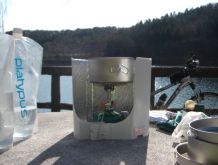 県道69号線(祖母井)に「道の駅」、ここに温泉「ロマンの湯」がある。ここの川原で「クッキング」。ガスバーナーでレトルト食品つくり。さらに友人は「味噌汁」を作り、美味しい昼食でした。