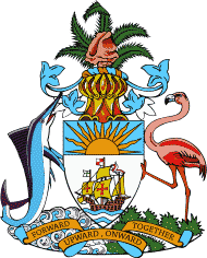 青が海(カリブ海と大西洋)とバハマ島の海岸を、黄色が国土と太陽を、黒い三角形は約80%をしめる黒人を表している。