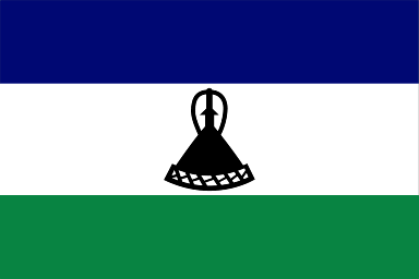 2006年、独立40周年を記念して制定された。青は空と雨を白は平和を、そして緑は恵み豊かな国土と繁栄を表している。中央には誇り高き王国の民族、バソト人の帽子が象徴として描かれている。