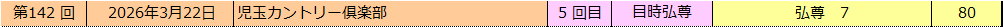 第142回 2026年3月22日 児玉カントリー倶楽部 天候:晴れ