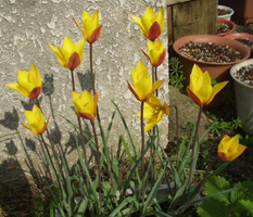 こんなチューリップが咲きました(写真は4/15)。矢車草とミニひまわりの種を撒きました。ひまわりの発芽が始まりました。