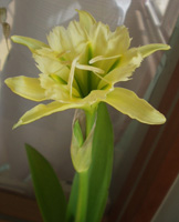 こんなチューリップが咲きました。ペピーノの苗をうえつけました。婦長の家のソラマメに追肥を施しました。