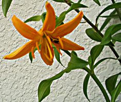 グロリオーサが咲きました。今度は虫に食われていないヤツです(^^;)