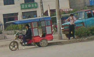 車のナンバープレートは「鄂×××-×××」。 鄂は鄂州の略か。 すごい排気ガス。危険な通行人多数。 |