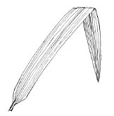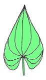 単子葉植物の葉は、平行脈といわれ、葉脈(葉のすじ)が平行で、あまり枝分かれしていません。しかし、単に平行と考えてはいけません。上の左から4つとも、みな単子葉植物のものです。