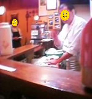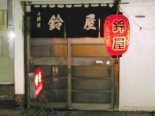 鈴屋さんは、ご夫婦お二人で切り盛りしているアットホームなお店です。それほど広いお店ではありませんが、それだけに親方と女将さんの気配りが行き届いています。客層は、落ち着いた年齢の方が多く、みなさん舌が肥えており、鈴屋の料理に納得しています。(この写真は、友達のデジカメ付き携帯電話を借りて撮影したものです。2002.06.26) |