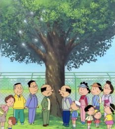 長谷川町子美術館は、長谷川姉妹が蒐集した絵画が中心の展示です。 東山魁夷や平山郁夫なので、あまり趣味に合いません。 もっと長谷川町子作品に重点を置いて展示すればいいのに。 屋外にはこの「春のスペシャル」のセル画が…。 貴重なセル画を日光に曝して退色させてしまうとは、あまりにももったいない。