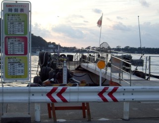 まことが船で西伊豆に来るというストーリーや、乗っていた船がかなり小型だったのを見て、どうして船の苦手なまことがわざわざ船に乗ったのかと疑問を感じていました。 また、航路を調べたところ、フェリーは清水−土肥間(放送当時は富士−土肥間か?)に運航されているのみで、まことが電車を乗り過ごしたとしてもわざわざ船に乗るのは変なような気がしたのです。 ところが、なんと驚いたことに、戸田港には沼津から小型の高速船が運航されているのです。 しかも、沼津から修善寺経由でバスに乗るより船に乗る方が時間がかからないのです。 戸田村観光交通案内でも、東海道線からの交通として高速船が案内されているくらいです。 なんと、まことは単なるストーリーの都合ではなく、おそらく沼津駅で戸田村への行き方を聞いて、案内されるがままに高速船に乗ったのだ。 脚本の雪室さんの土地勘には驚かされてしまった。 なお、どんな船かは確認できなかったが、発着場の小ささは左の画像の船にぴったりという感じである。 |