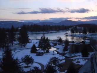 夜の駐車場のバックに湖が見えますが、この形状は蓼科湖に間違いありません。奇しくも宿泊したホテルの窓から見た景色が写真4で、ほぼ同じ光景でした。 背景の山の形も同じです。 一つ隣のマリーローランサン美術館の方がより近いアングルになるかもしれません。 ホテル周辺の道路も回ってみましたが、林の木立がジャマだったり、ホテルがジャマだったりで、うまく見えるところはありませんでした。 しかしながら、その周辺にこんな大きな駐車場はありません。それから、夜も車はそれなりに通るので、運転の練習向きとは言えないような気がします。(^^; |