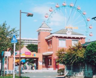左の画像は、電車の中から遊園地が見えるというシーンです。 この遊園地が「あらかわ遊園」であるというのはこれまた定説ですが、実際には遊園地は駅から歩いて5分くらいのところにあり、車窓からは建物に隠れて見えません。 遊園地の前まで行って同じように見える角度から写真を撮りましたが、アニメの画像は本当に何の工夫もなく(笑)、全くのそっくりそのままでした。 |