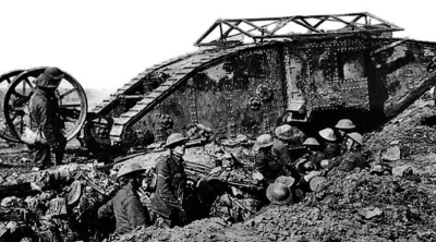 第一次世界大戦における最大の会戦/ソンムの戦い。塹壕戦に、イギリス軍は新兵器/戦車を登場 させた。 毒ガスも使用(/イープルの戦いで・・・ドイツ軍が使用)。ライト兄弟が発明した、飛行機も投入され ますが、まだ、戦略を左右するほどでは、無かった様です。 (/ネットより画像借用)